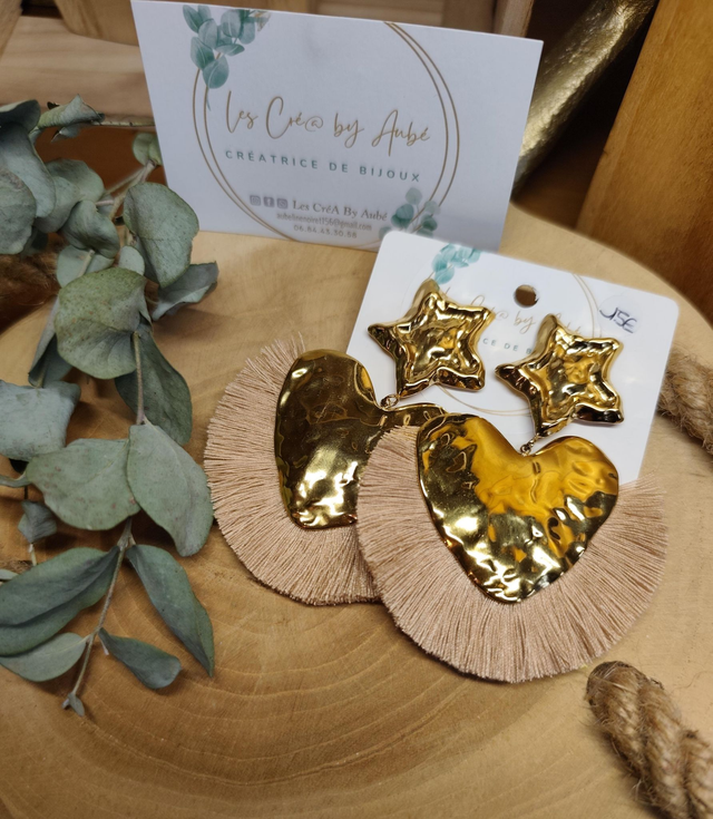 BO BIG BOHEME COEUR/ETOILE GOLD/ POMPONS BEIGE 0001158