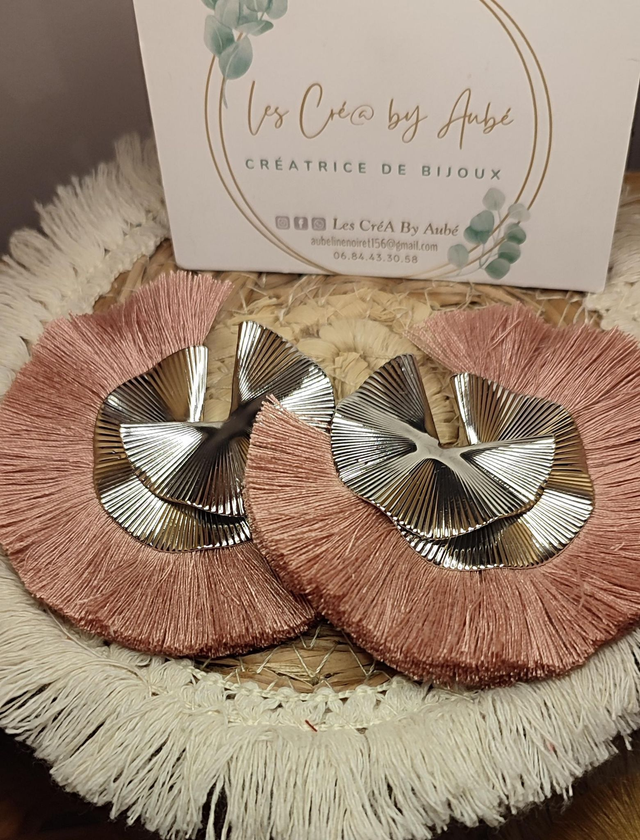 BO BIG BOHEME SPIRALE ARGENTE / POMPONS VIEUX ROSE 0000771