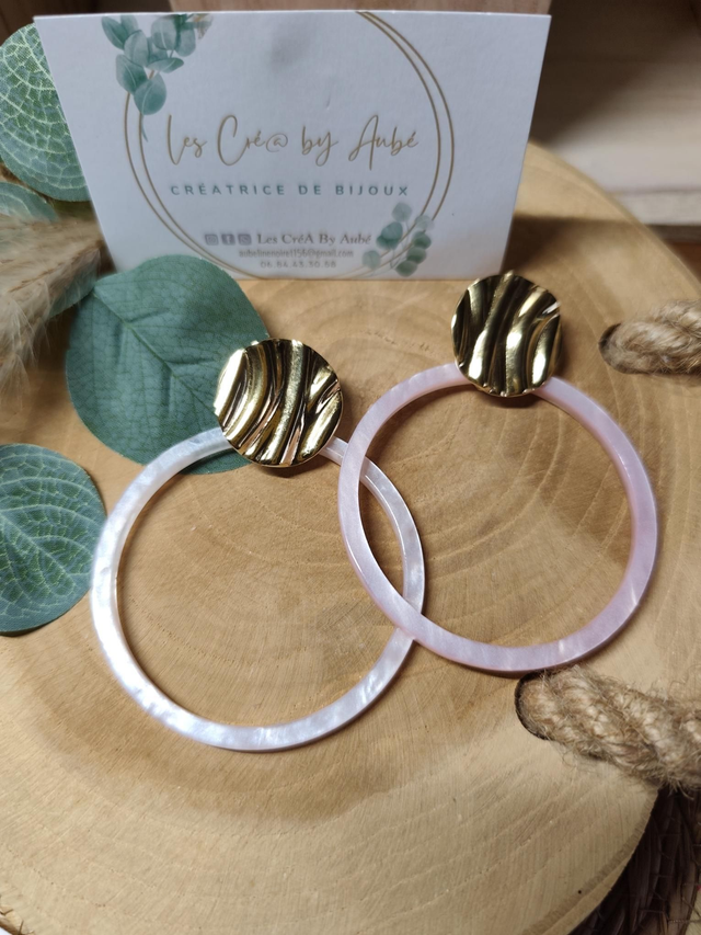 BO BIG CREOLES RESINE ROSE/ ACIER INOXY GOLD 0001336