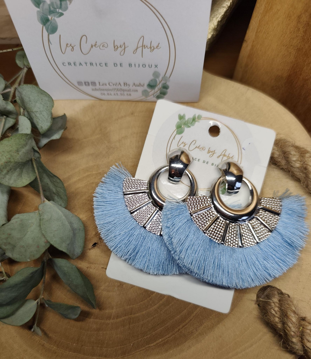 BO BOHEME DEMI LUNE ARGENT/ POMPONS BLEU 0001024