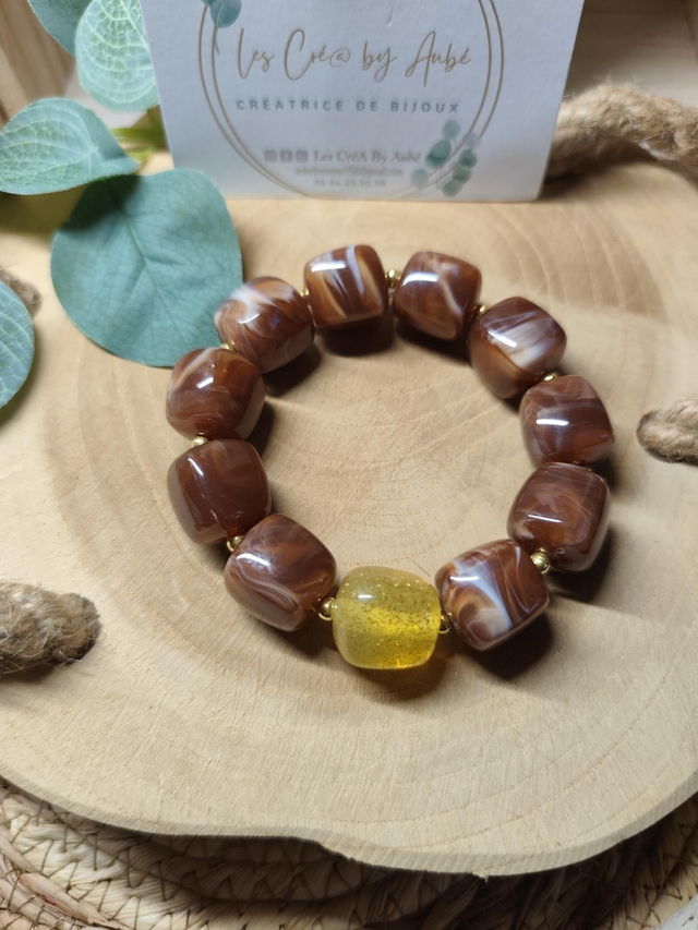 BRACELET BIG PERLES MARRON/PAILLETTES GOLD 0001054