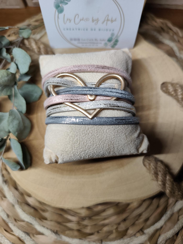 BRACELET MULTI RANGS COEUR ROSE/GRIS 0001326