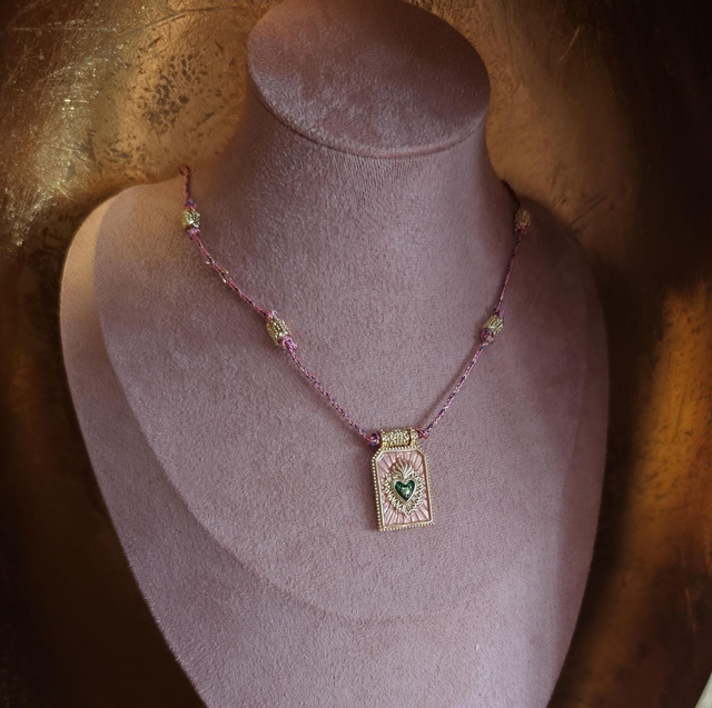 COLLIER "BOHEME" CORDON ET MEDAILLON ROSE 0000430