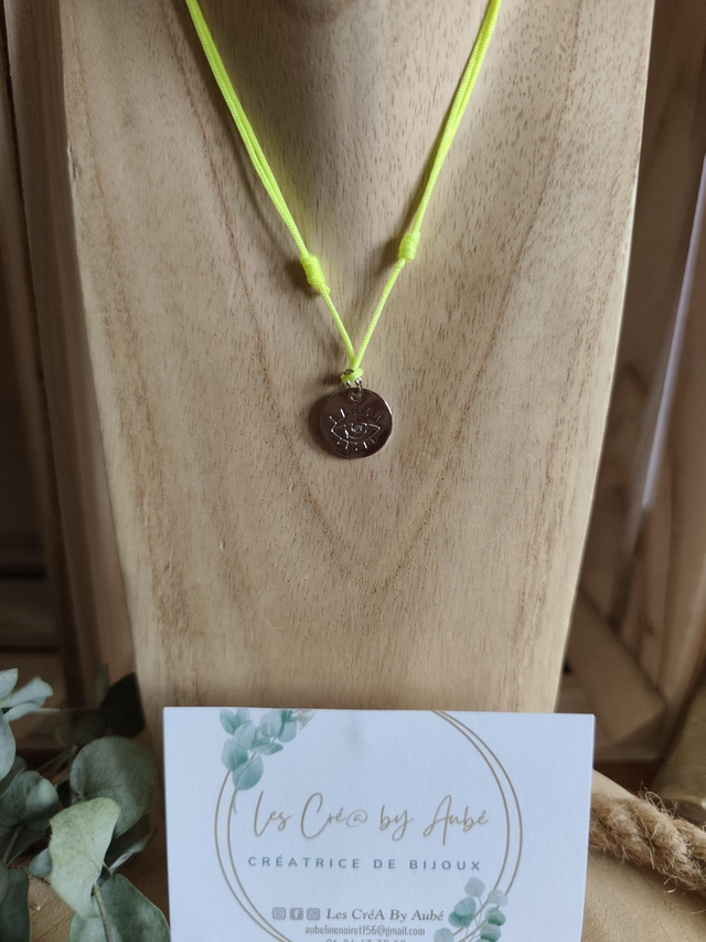 COLLIER CORDON JAUNE FLUO/ OEIL ARGENT 0000476